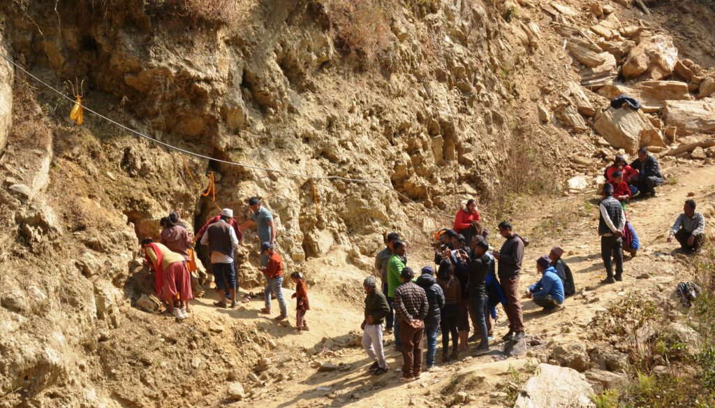 काभ्रेपलाञ्चोकको नमोबुद्ध नगरपालिका–९दाप्चाको घट्टेखोलास्थित सडक छेउको भित्तामा रहेको गुफामा चुनढुङ्गाको कलात्मक आकृति भेटिएपछि त्यहाँ मानिसको भीड लागेको हो ।