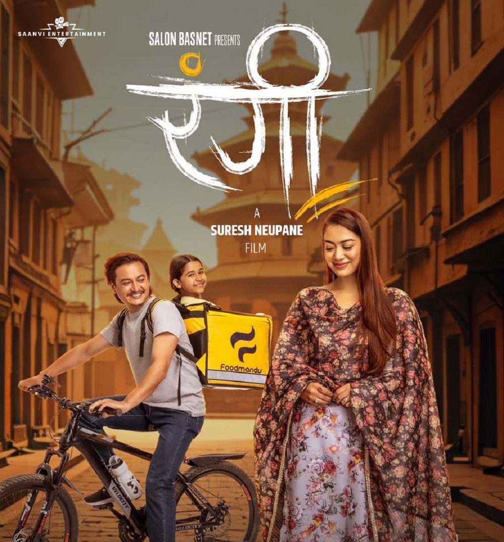 पोस्टरमा कलाकार सलोन बस्नेत, नम्रता श्रेष्ठ र बाल कलाकार आयुषी ढकाललाई स्थान दिइएको छ । पोस्टरमा साइकलमा रहेका सलोनले फुडमाण्डुको ब्यागमा आयुषीलाई बोकेका छन् । सलोन र आयुषी खुशी मुद्रामा छन् । सलोनको अगाडि नायिका नम्रता लजालु भावमा उभिएकी छन् । पात्रको पृष्ठभूमिमा वसन्तपुर दरबार स्क्वायरको गल्ली देख्न सकिन्छ ।