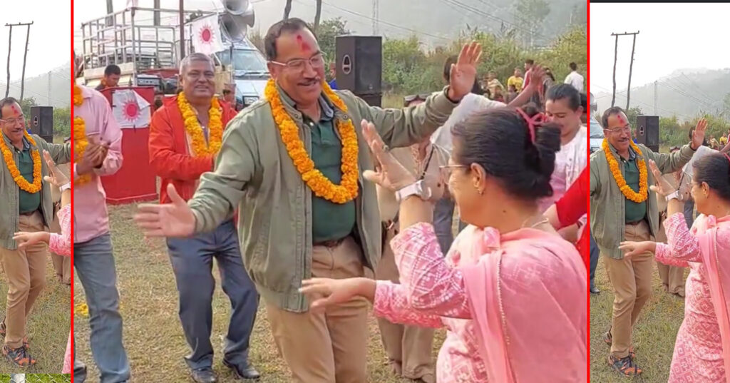 एमालेको चुनावी गीतमा छमछमी नाँचे थापा दम्पती